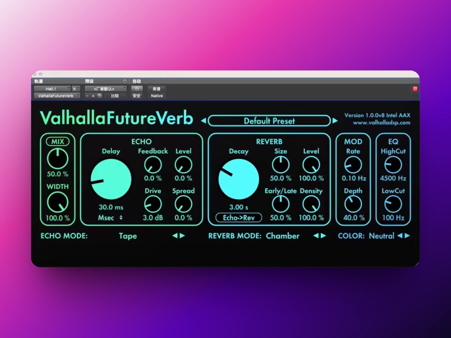- 双引擎设计:该插件具有独立的混响和回声部分,可以以各种方式进行路由(预延迟、后处理等)。